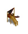 Realizzato in legno scelto di pino silvestre (Pinus sylvestris L.) proveniente da foreste Scandinave a certificazione di origine (FSC e PEFC) e governate ad alto fusto secondo i principi della selvicoltura naturalistica. Impregnato mediante un trattamento a pressione (12 bar) all'interno di un autoclave a gestione computerizzata, questo ciclo di impregnazione, che rispetta la norma DIN 68800-3, è svolto in modo da raggiungere la classe di penetrazione P8 secondo UNI EN 351-1 (impregnazione di tutto l'alburno) al fine di poter impiegare il legno in classe di rischio biologico 4 secondo UNI EN 335 cioè a contatto permanente con il terreno od acqua dolce.Ulteriormente trattato con vernici pigmentate all'acqua a base acrilica/alchidica prive di cromo, cadmio e cloro per la protezione del legno dall'azione degradativa dovuta ai raggi UV (azione fotolitica sulla lignina, causa dell'ingrigimento del legno) ed utilizzazione di prodotti a basso impatto ambientale, sia per l'uomo che per l'ambiente (assenza di sostanze cancerogene, teratogeniche o dannose per il sistema riproduttivo umano). Legno lamellare, utilizzato laddove è importante la stabilità dimensionale (es. montanti) e la riduzione dei fenomeni di fessurazione, viene realizzato in TLF utilizzando pino silvestre impregnato in autoclave. Per la realizzazione di questo elemento utilizziamo un adesivo strutturale di tipo I (impiego in ambiente esterno) conforme a UNI EN 301 e testato secondo la norma UNI EN 302. - Montanti di sez. mm.95 x 95 in legno lamellare a 3 lamine; coperti dove necessario da un cappuccio nero in polietilene e con attacco a terra in acciaio zincato, fissato al montante per mezzo di 4 barre filettate del diametro mm. 10, incollate nel legno per almeno 10 cm. con apposite resine.- Piani quadrati da cm.116x116 fabbricati con tavole di sez. mm. 95 x 35, supportate da telaio quadro con rinforzo centrale costituito da elementi di sezione mm 115 x 45.- Pannelli di protezione laterali ciechi, formati da tavole in perlinato da mm.145 x 20 di colore rosso (con giunto maschio-femmina) inclinate a 45 gradi, serrate fra due cornici, una di sez. mm 45 x 45 l' altra di sez. mm 45 x 25 colorate in nero, sormontate da corrimano di mm 95 x 35.- Tetto a 2 falde triangolari dotato di copertura in tavole da mm.145 x 20 di sez. fissate su telaio di supporto costituito da 6 elementi accoppiati di mm 70 x 35 di sez., disposti a bordo falda, il tutto assemblato alla torre con apposite staffe in acciaio inox.- Scivolo con due sponde in legno lamellare di pino impregnato da mm. 40 di spessore e pista in acciaio inox da 1,5 mm. di spessore montata ad incasso sulle sponde laterali, la parte finale dello scivolo é arrotondata con idoneo raggio per evitare infortuni al momento dell'arrivo a terra, il tutto fissato al suolo per mezzo di 2 staffe zincate a caldo- Scala a gradini formata da: una rampa con gradini realizzati con un profilo di sez. mm. 145x45, assemblati con incastri a legno sulle fasce laterali di mm.115x45; pannelli di protezione laterali costituiti da profili sagomati in legno massello di sez. mm. 140 x 20 posti verticalmente e fissati superiormente ai due corrimano. di sez. mm.115 x 45 ed inferiormente alle fasce; montanti scala da mm. 95 x 95 con attacco a terra in acciaio zincato, fissato al montante per mezzo di 4 barre filettate del diametro mm.10, incollate nel legno per almeno 10 cm. con apposite resine.SICUREZZA: COSTRUITO RISPETTANDO LE NORME EN 1176-1-3