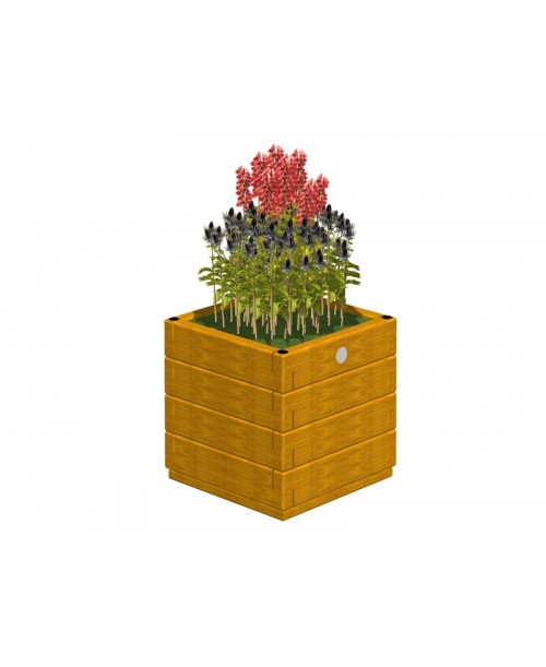Costruito interamente in legno di pino svedese, impregnato a pressione con sali di rame, e ulteriormente trattato con vernici pigmentate a base acrilica, al fine di proteggere il legno anche dalle degradazioni chimico-fisiche esercitate dai raggi ultravioletti (azione fotolitica sulla lignina, causa principale dell'ingrigimento del legno esposto alle intemperie).- Pareti fioriera realizzate con travetti damm. 115X45 assemblati con barre filettate da 10 mm. e incastro a mezzo legno sugli angoli.- Fondo fioriere realizzato con tavole da mm. 35 di spessore.